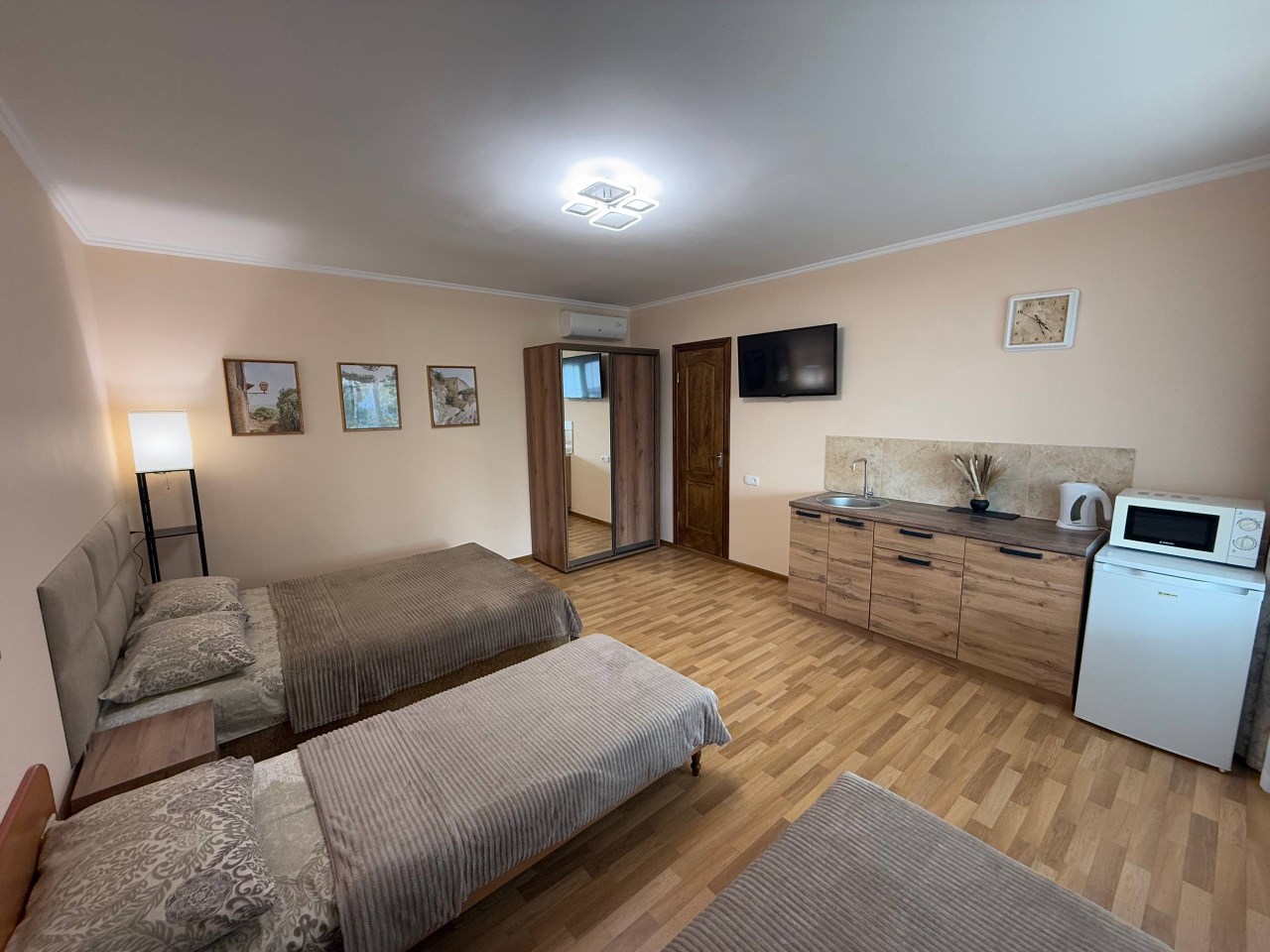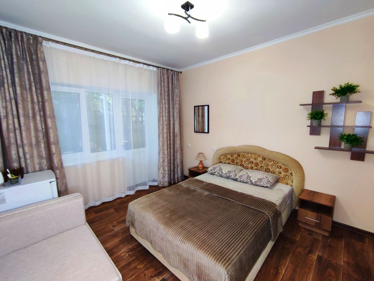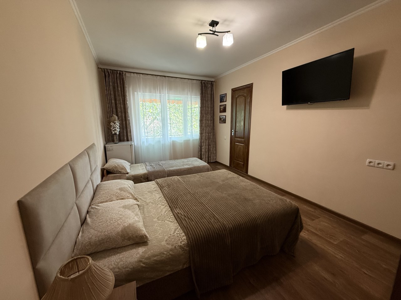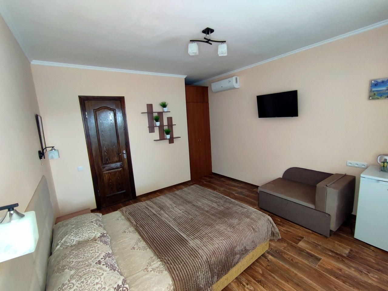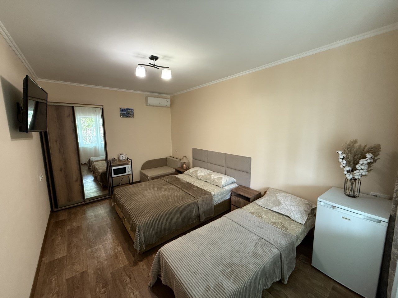 Всего 7 номеров в доме, а значит спокойный отдых при минимуме соседей. Номера 2-х, 3-х, 4-х местные. В номере душ, туалет, телевизор, холодильник, кондиционер, электрочайник, WiFi.