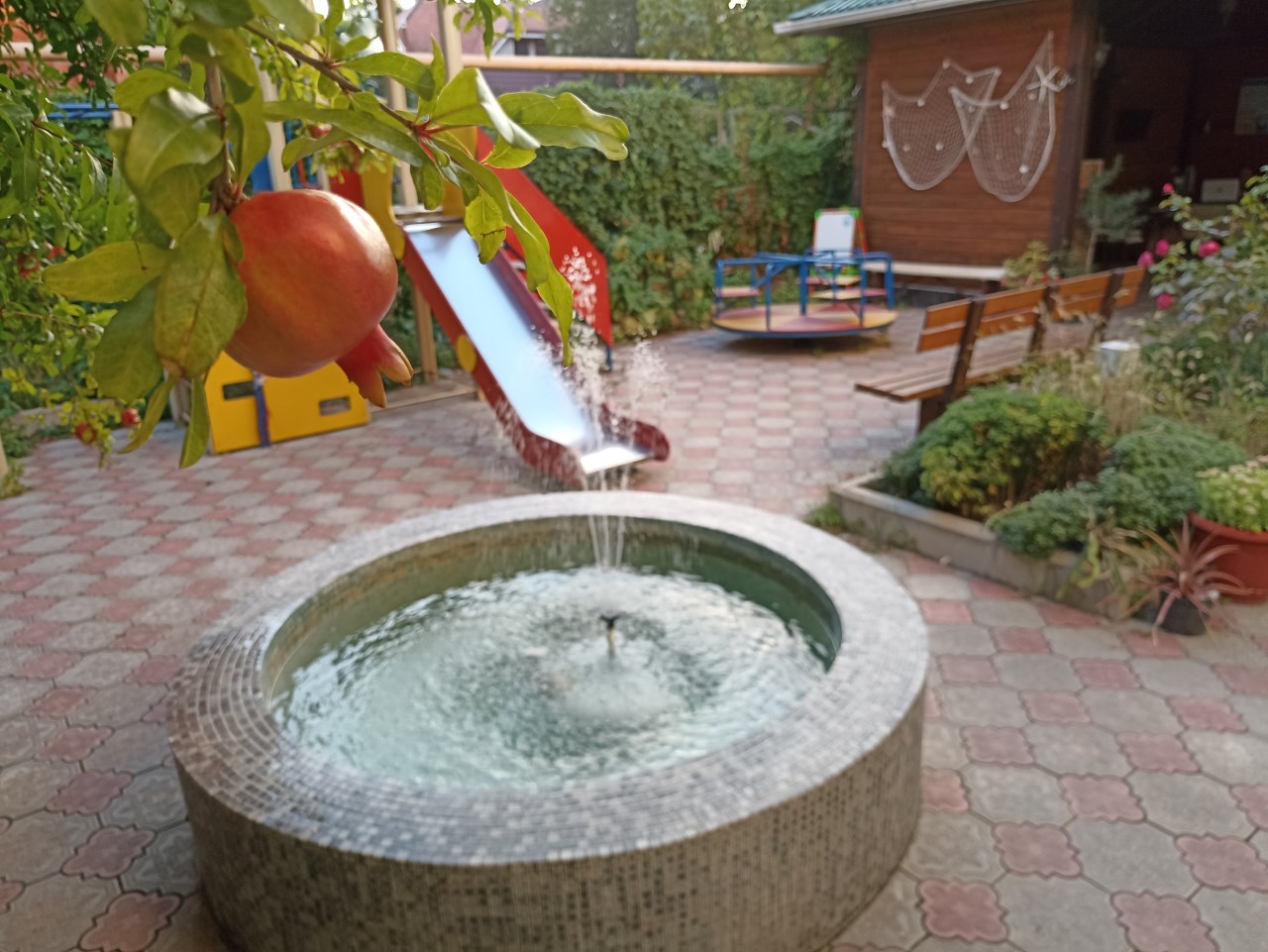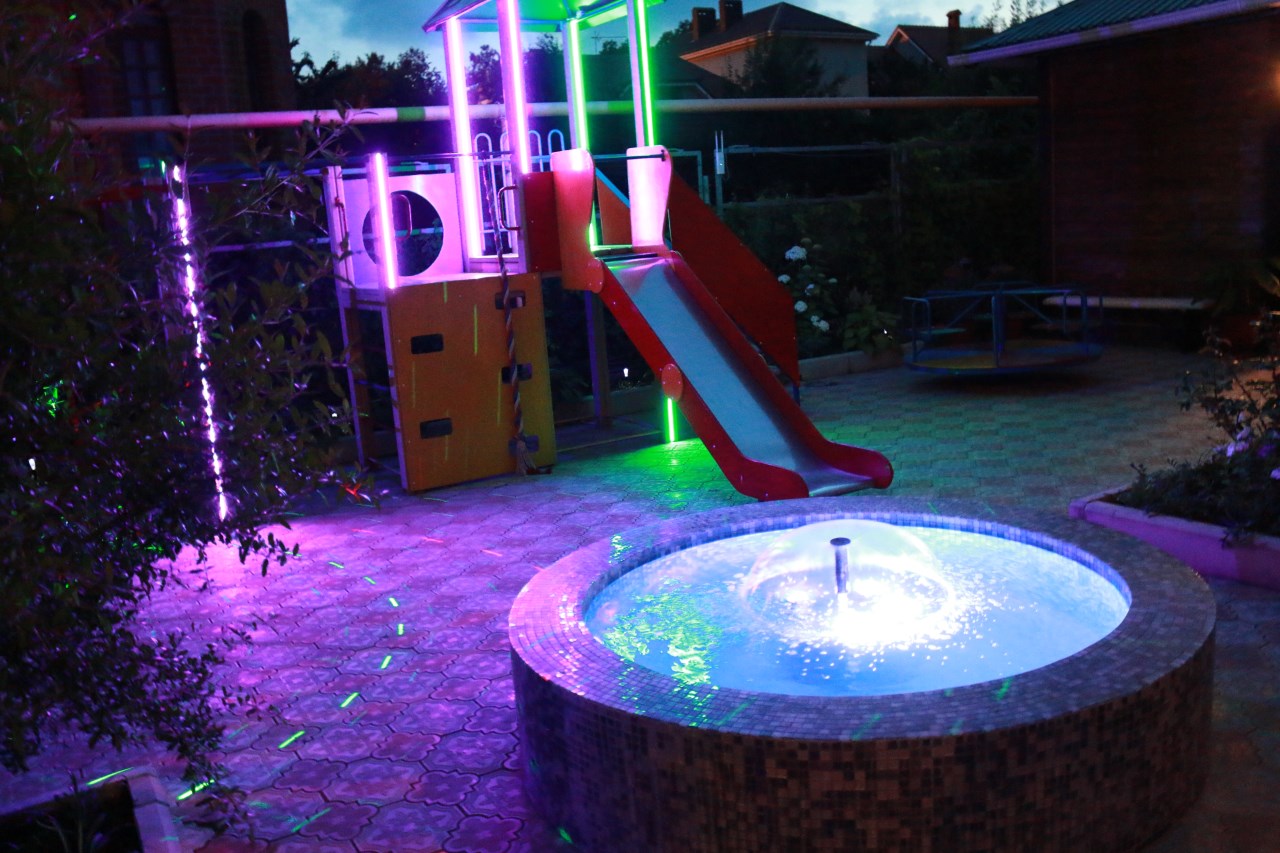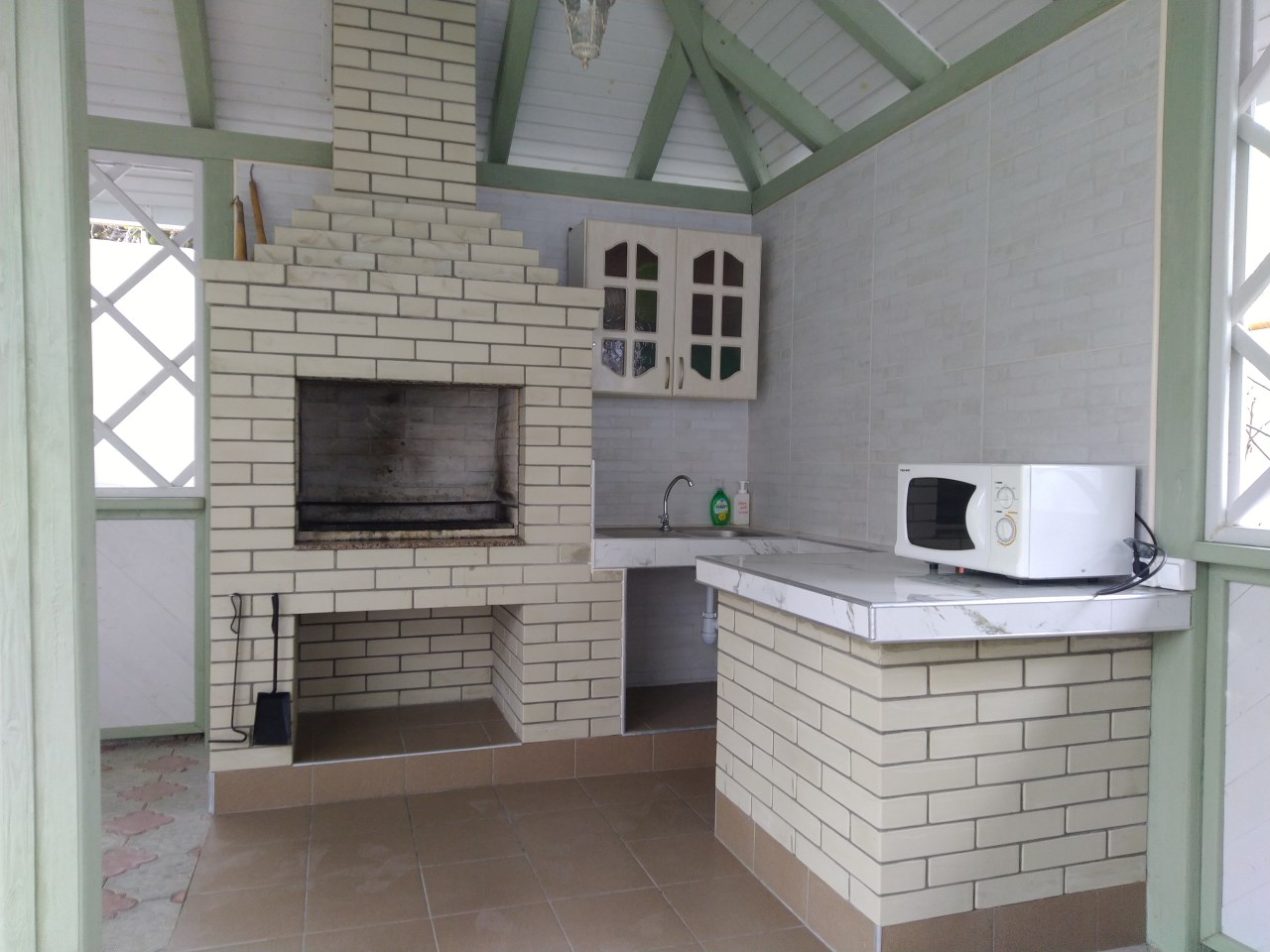 Во дворе гостевого дома имеется полностью оборудованная кухня для самостоятельного приготовления пищи и уютная беседка в саду для шашлыков.