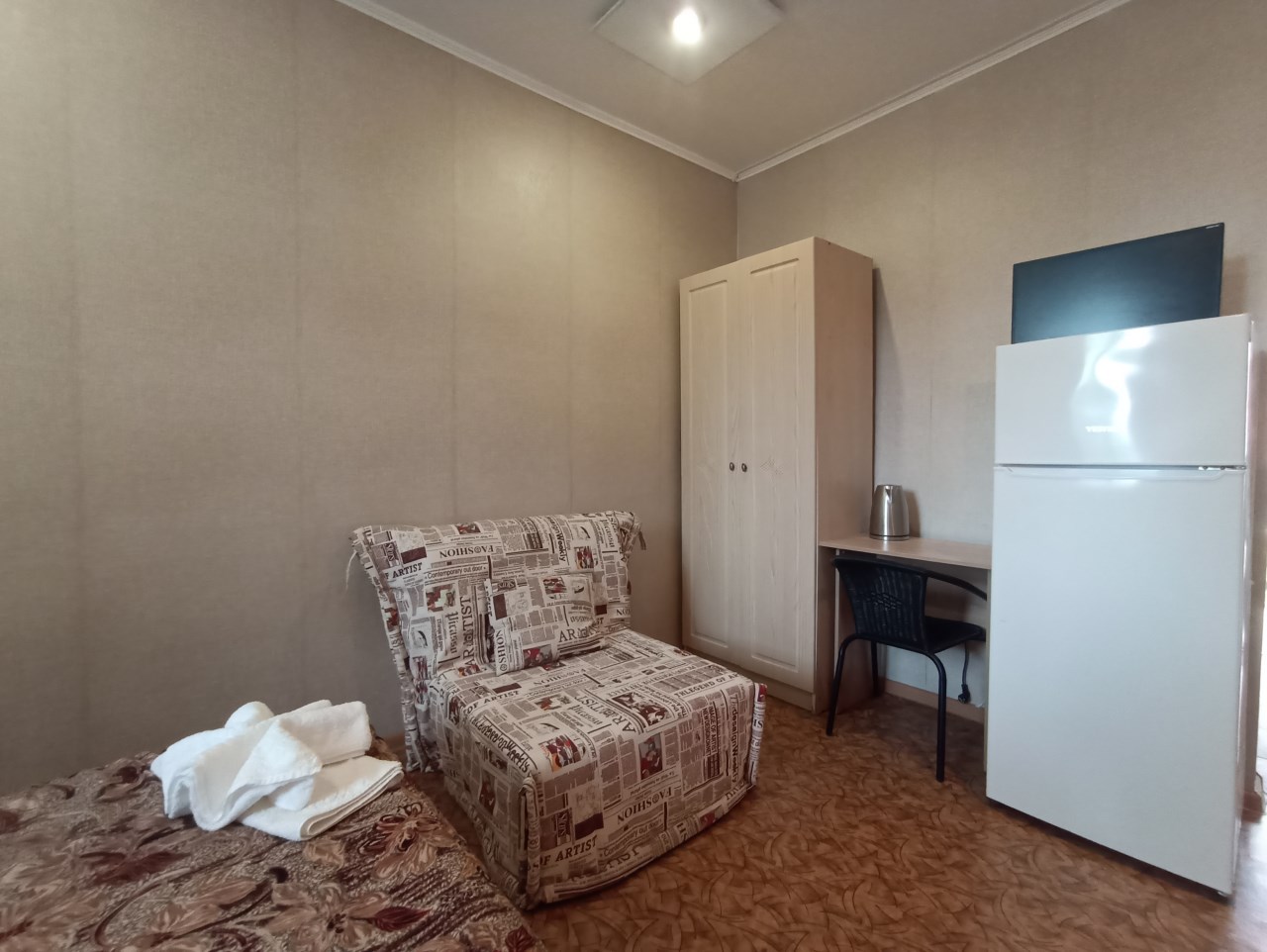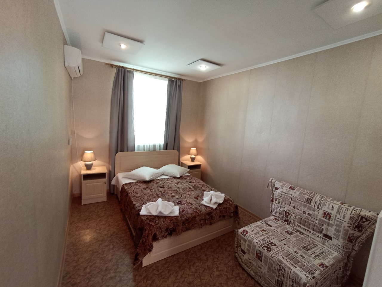 Для размещения на ваш выбор предоставляются стандартные номера различной вместимости. Имеются просторные 2х комнатные номера с раздельными комнатами! Во всех номерах двуспальные, либо две односпальные кровати, прикроватные тумбочки, шифоньер, стулья, столик, телевизор, холодильник, сплит-система. Санузел: умывальник с зеркалом, душ, туалет.
